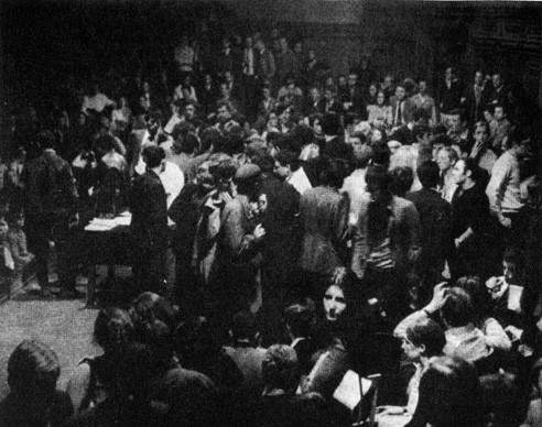 Les «Comités d’action», qui s’étaient formés spontanément un peu partout, se trouvèrent sur la frontière ambiguë entre la démocratie directe et l’incohérence noyautée et récupérée. Cette contradiction divisait intérieurement presque tous ces comités. Mais la division était encore plus claire entre les deux types principaux d’organisation que la même étiquette recouvrit. D’un côté, il y eut des comités formés sur une base locale (C.A. de quartiers ou d’entreprises, comités d’occupation de certains bâtiments tombés aux mains du mouvement révolutionnaire), ou bien constitués pour accomplir certaines tâches spécialisées dont la nécessité pratique était évidente, notamment l’extension internationaliste du mouvement (C.A. italien, maghrébin, etc.). De l’autre côté, on vit se multiplier des comités professionnels, tentative de restauration du vieux syndicalisme, mais le plus souvent à l’usage de semi-privilégiés, donc avec un caractère nettement corporatiste, comme tribune des spécialistes séparés qui voulaient, en tant que tels, se rallier au mouvement, y survivre, et même y pêcher quelque avantage en notoriété («États Généraux du Cinéma», Union des Écrivains, C.A. de l’Institut d’Anglais, et la suite). L’opposition des méthodes était encore plus nette que l’opposition des buts. Là, les décisions étaient exécutoires; ici, elles étaient des vœux abstraits. Là, elles préfiguraient le pouvoir révolutionnaire des Conseils; ici, elles parodiaient les groupes de pression du pouvoir étatique.