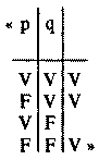 | (V V F V) (p,q) | « | si p alors q. (p ⊃ q) | ||